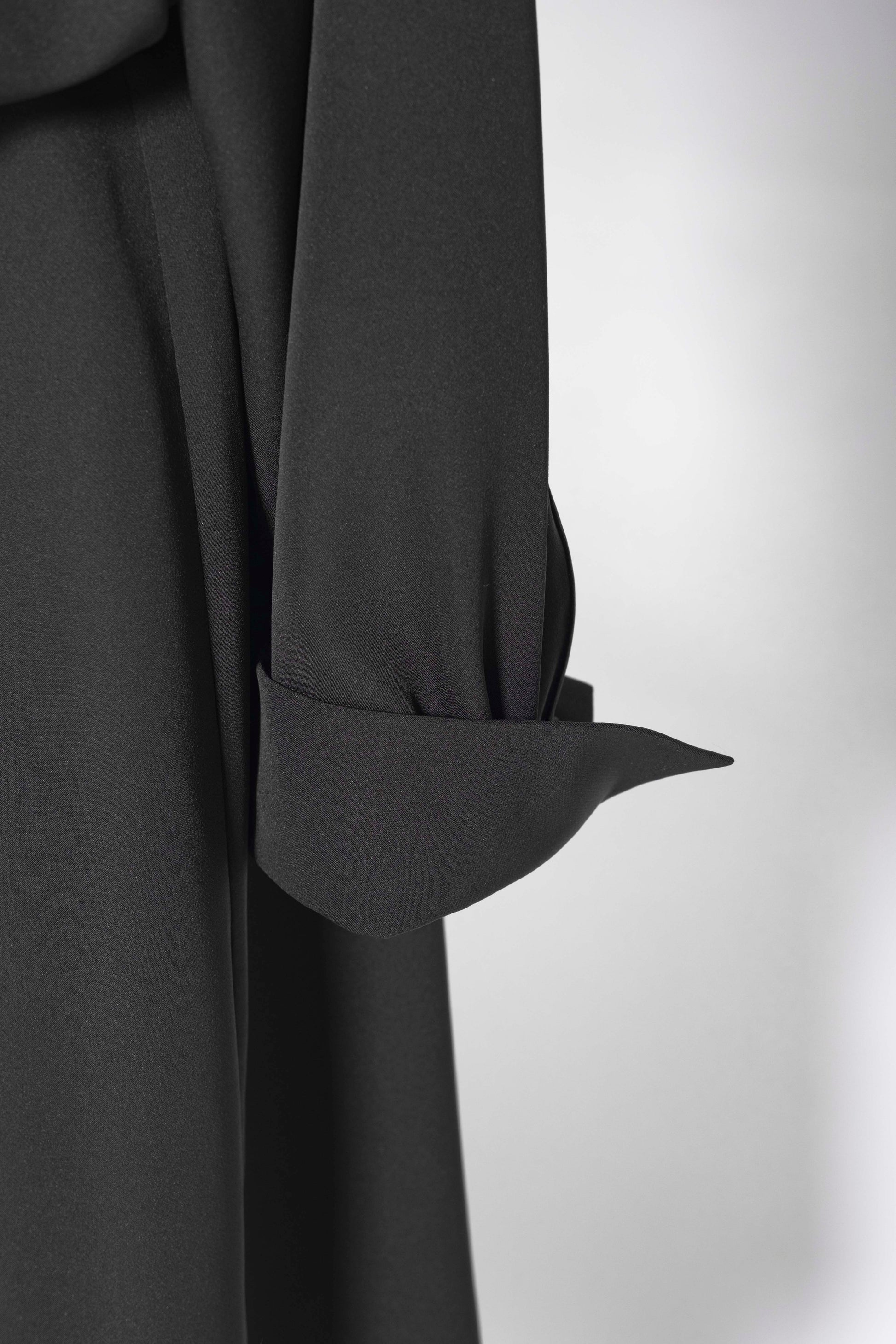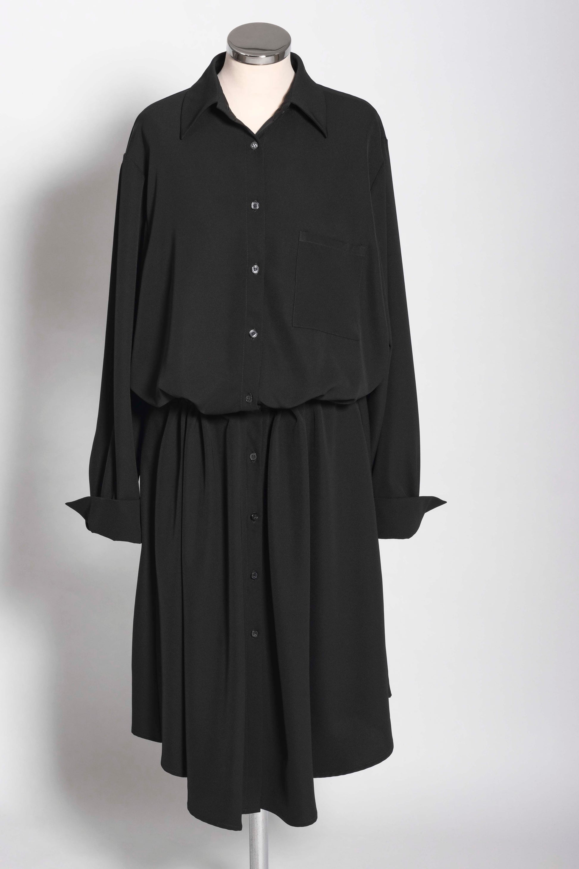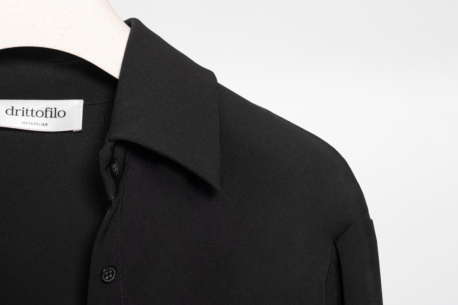 Dal design fluido e contemporaneo, questo abito chemisier è realizzato in un tessuto morbido e cadente, che scivola delicatamente sul corpo, valorizzando la silhouette con naturalezza. Il colore nero, intramontabile ed essenziale, ne esalta la versatilità.
